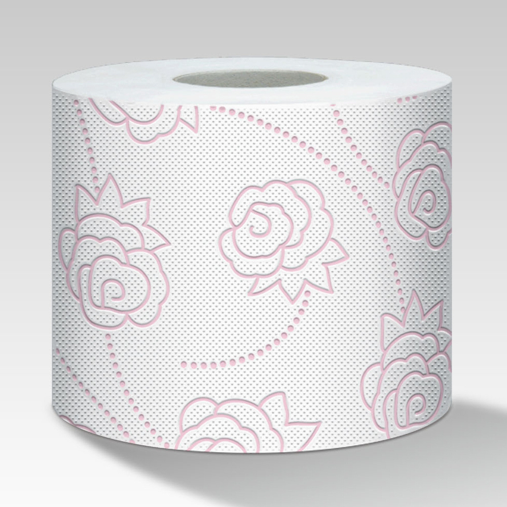 新感覚の立体エンボス製法でエレガントなローズ柄の2枚重ねロール。さわやかなバラの香りがトイレ空間を包みます。
