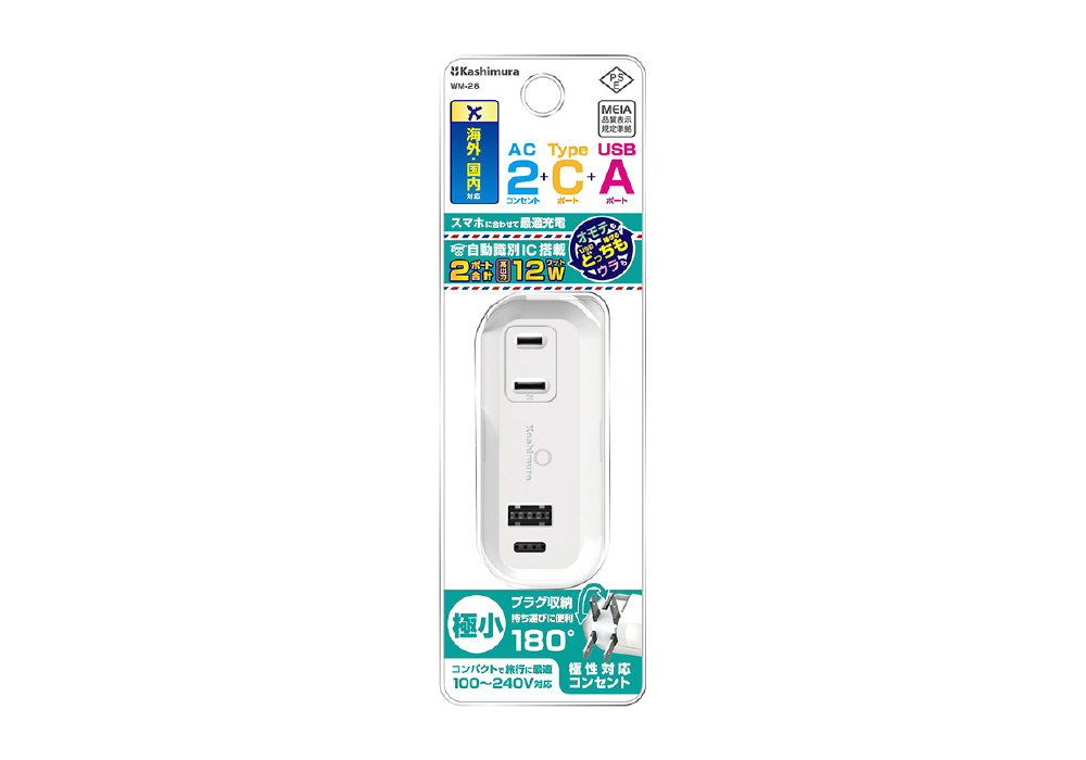 旅行用2AC2USB A+C 12W リバーシブル 自動識別 ホワイト WM-26
