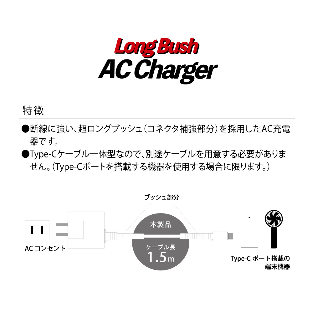 超ロングブッシュで断線に強いType-Cケーブル一体型AC充電器 10W 1.5m ホワイト AC-CMSS20W [10W]