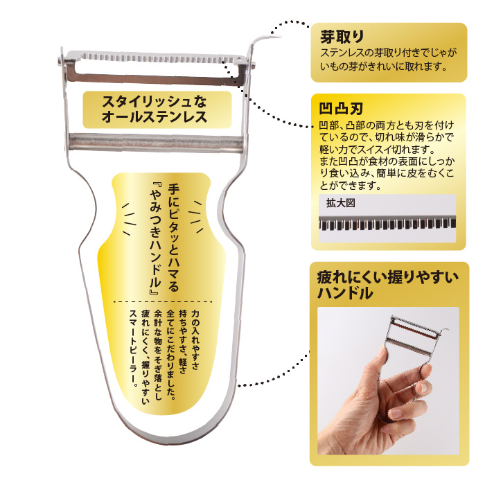 軽い力でスムーズに皮むきできるピーラー。
