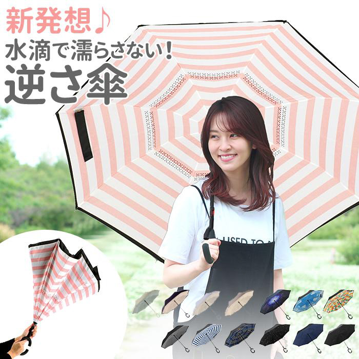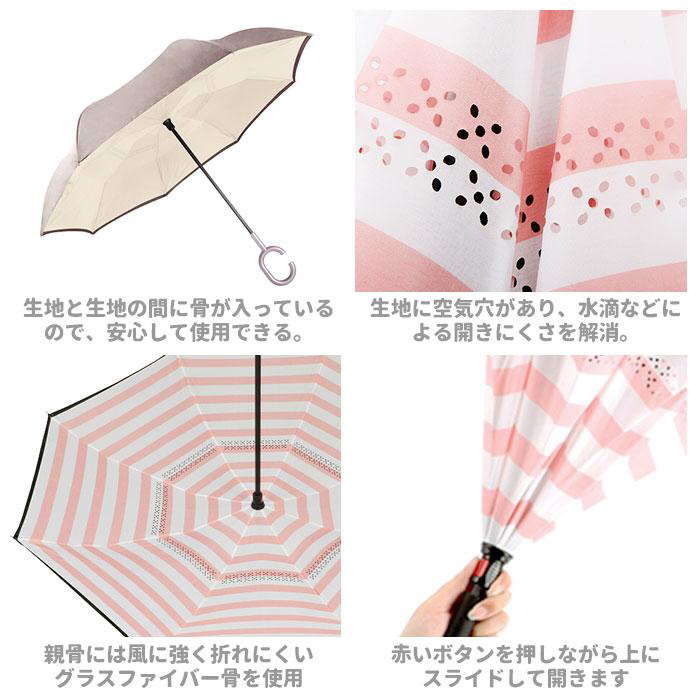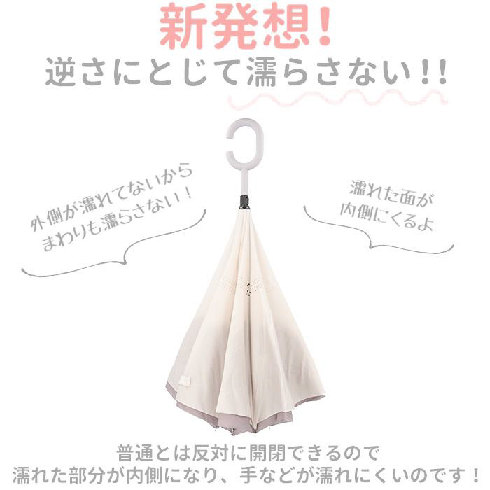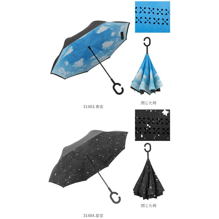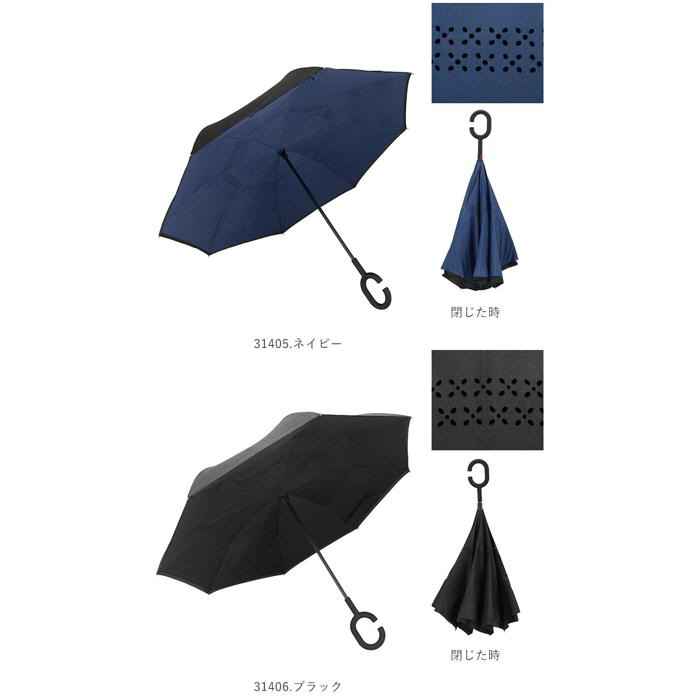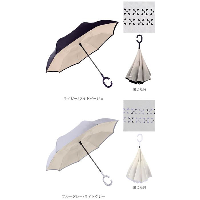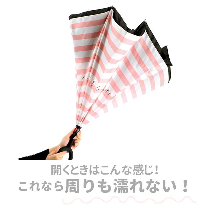 逆さに開いて逆さまに閉じる!たたむと濡れた面が内側になるリバースアンブレラ。