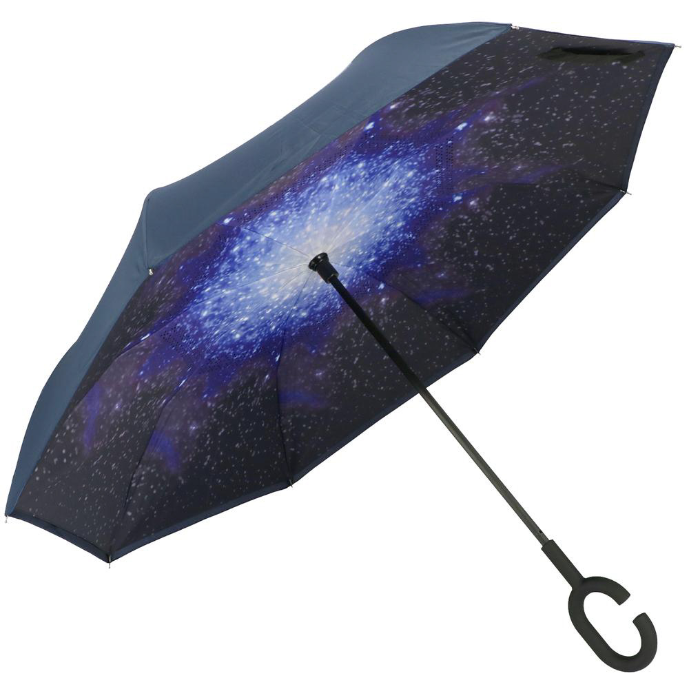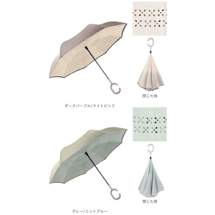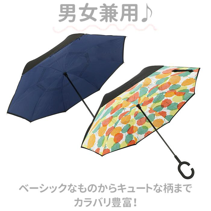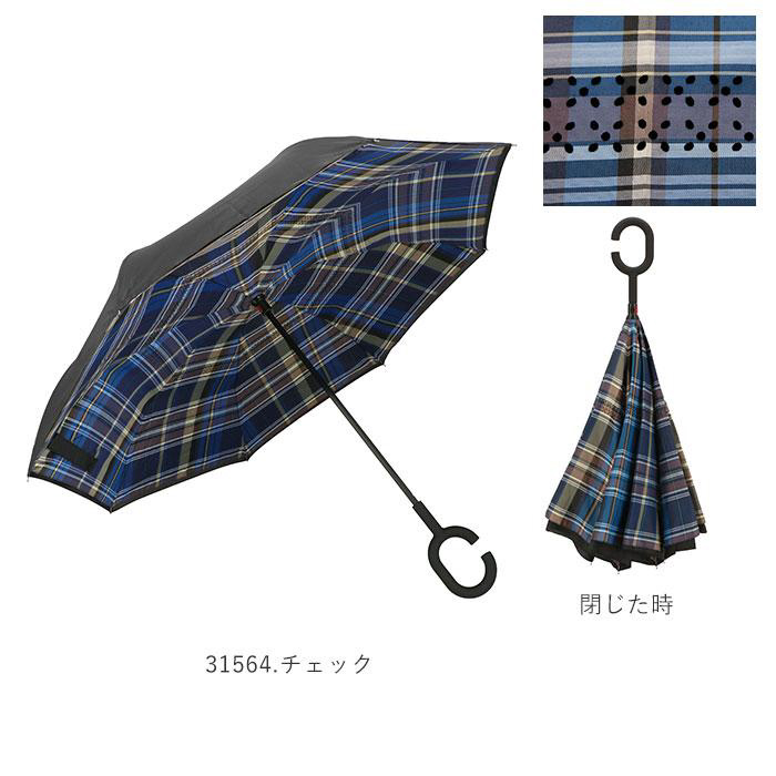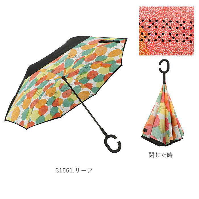 逆さに開いて逆さまに閉じる!たたむと濡れた面が内側になるリバースアンブレラ。