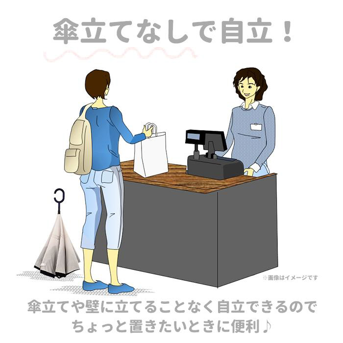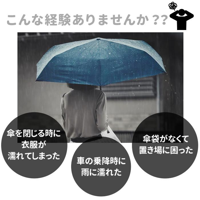 ■濡れた面が内側に来るので、洋服や荷物が濡れにくく、雨の日の車の乗り降りや建物の出入りなどのストレスを軽減♪