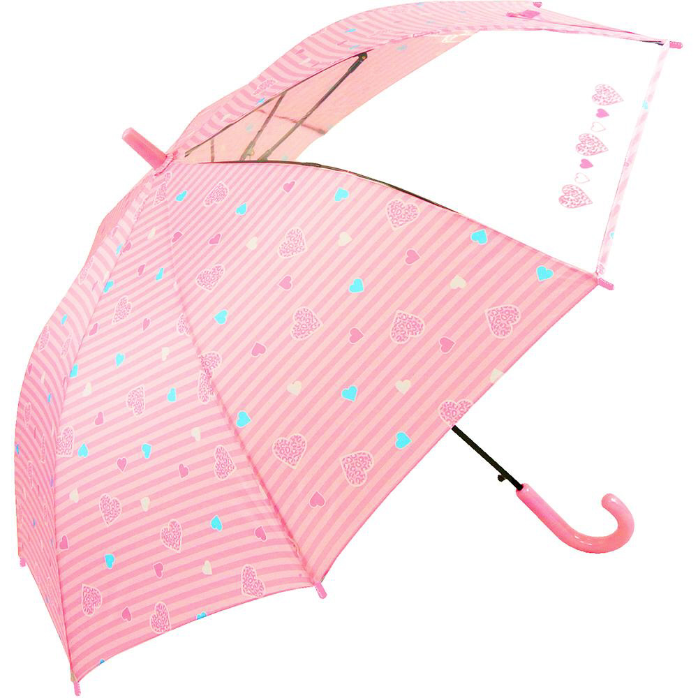 雨の日だって楽しくなっちゃうカワイイ長傘♪軽くて丈夫なグラスファイバー骨で折れにくく、1コマ透明窓になっているので前が見やすく安全です◎