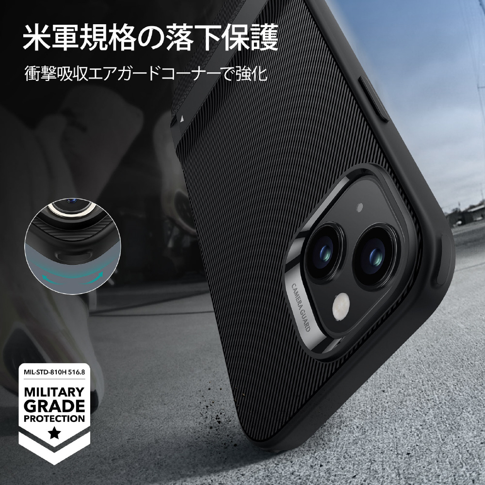 衝撃吸収エア ガードコーナー、隆起した1.2mmの画面エッジと1.0mmのカメラガードが組み合わさり、落下や衝撃、傷からしっかりとスマホを保護します。