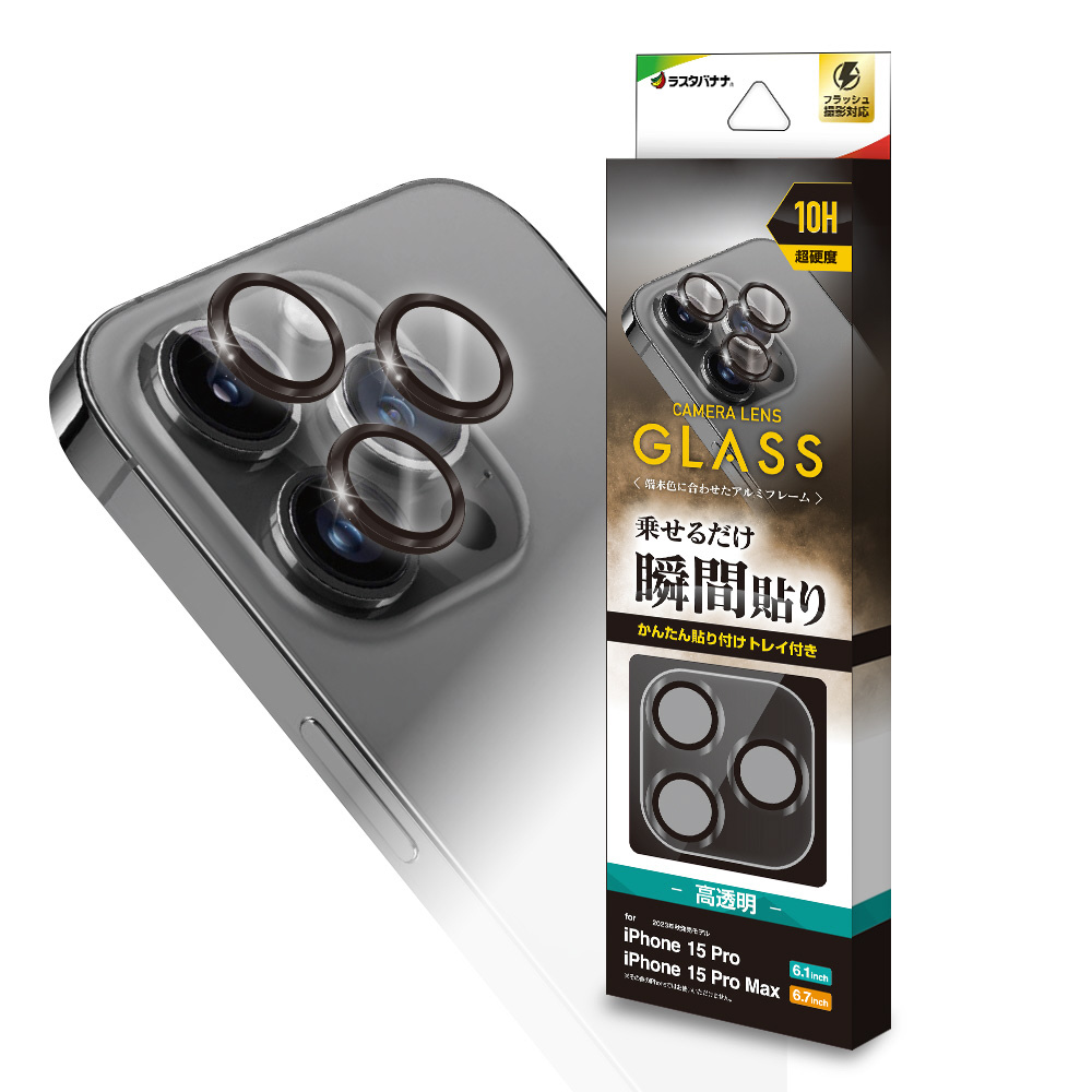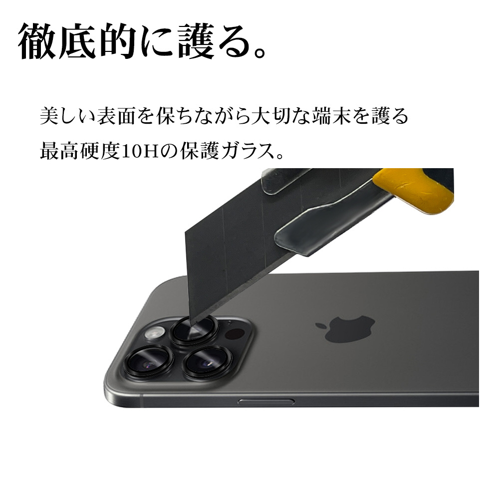 iPhone 15 Pro/15 Pro Max カメラレンズ保護ガラス アルミ単眼