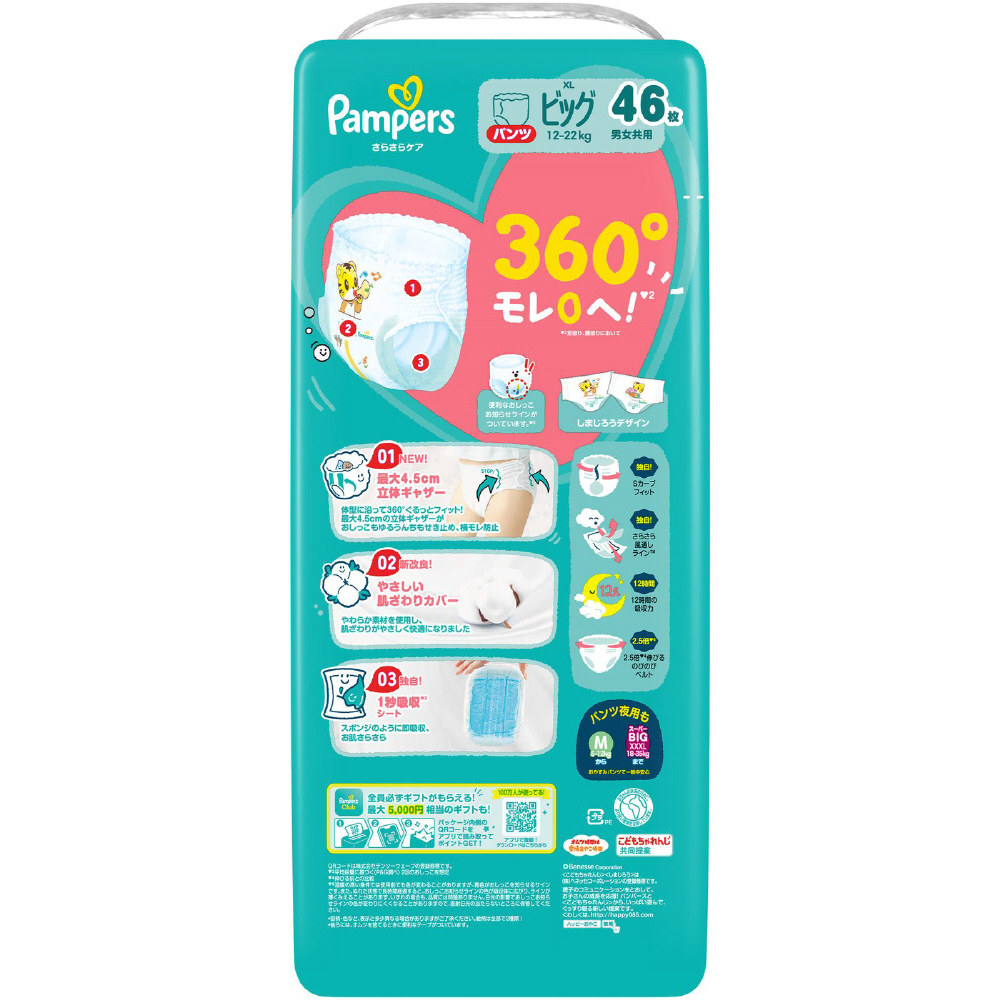 <パンツ ビッグサイズ(12-22kg)> パンパース オムツ XL さらさらケア 大容量 184枚(46枚×4個)