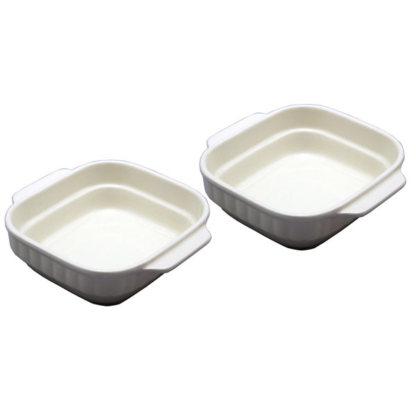 萬古焼 オーブン対応 ホワイトスタッキング 正角グラタン 皿 (小) 直径約14cm 2個セット