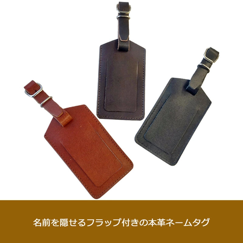 名前が隠せるフラップ付きのネームタグです。旅程用 用紙付き。荷物の目印として、また、ロストバゲージになった際に、荷物を手元に戻すための手がかりとして、ネームタグをつけて旅程表を入れておくことをオススメします。