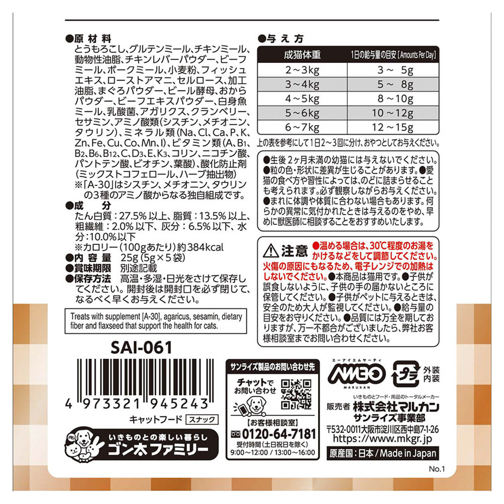 マルカンS AIM30 カリッとトリーツ チキン&ビーフ味 25g(5g×5袋)