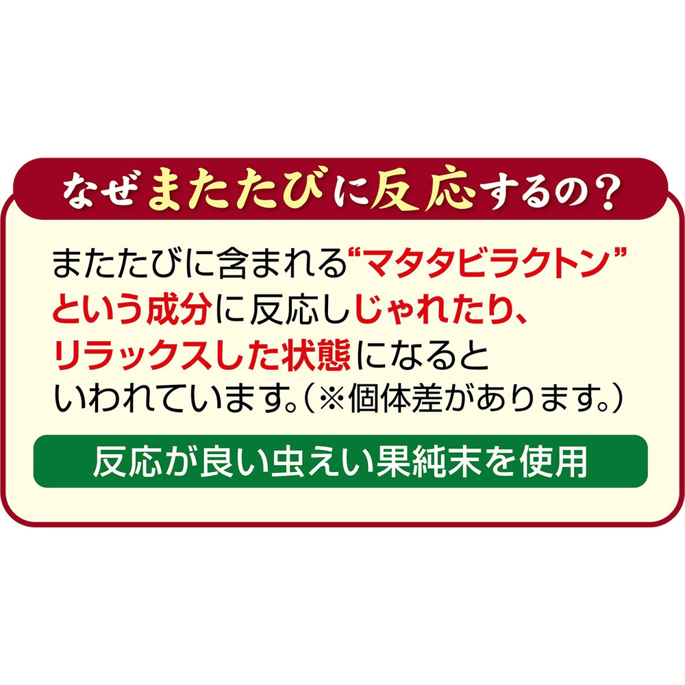 またたびの中でも反応が良い虫えい果の純末を使用。