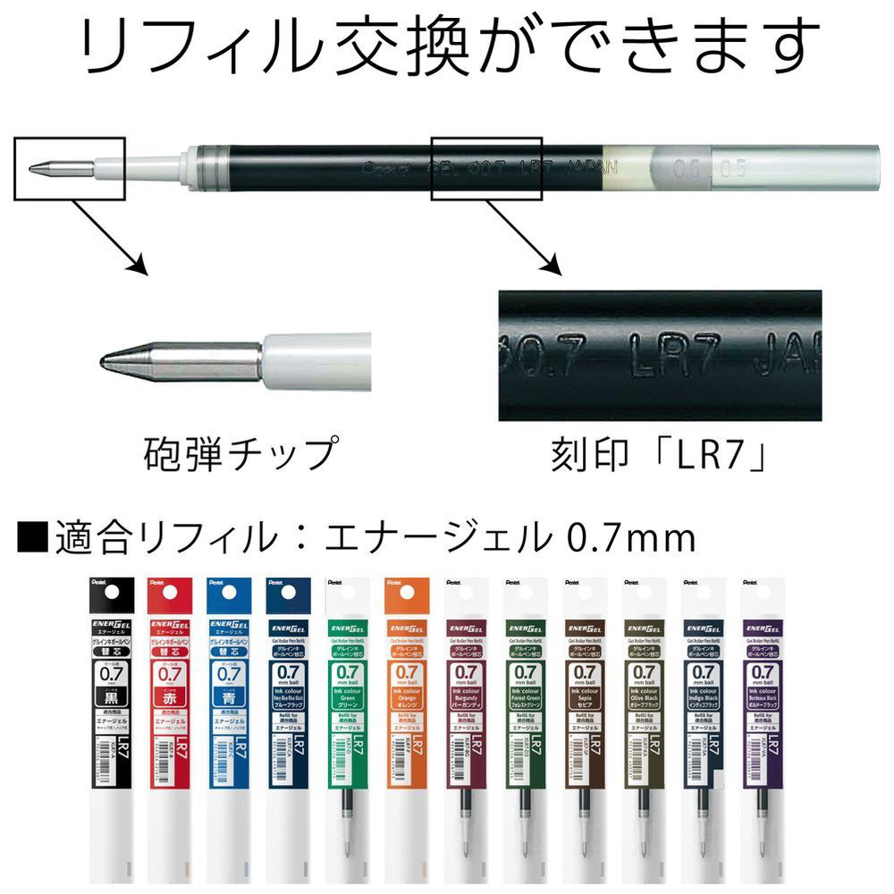 適合替芯:エナージェル ゲルインキ ボールペン替芯 0.7mm(XLR7-□)