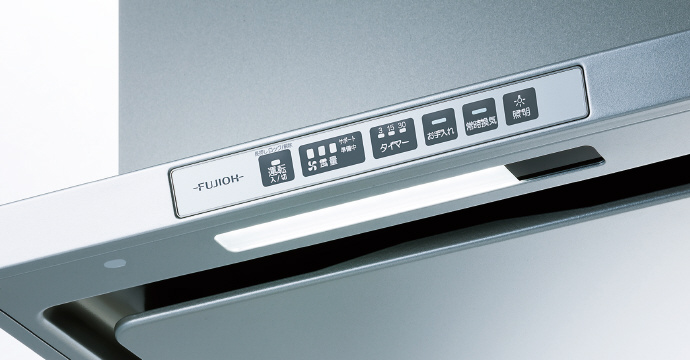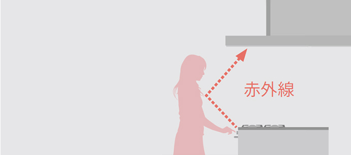 ビルトインコンロ連動:ビルトインコンロの点火/消火が、レンジフード(照明含む)の運転/停止と自動で連動。