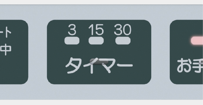 3段階タイマー:運転時間を、3分・15分・30分から設定可能。