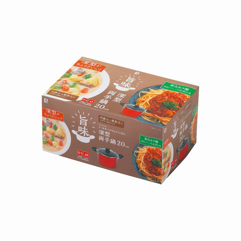 旨味 ふっ素加工IH対応ガラス蓋付 深型両手鍋20cm HB-6970 [IH対応]
