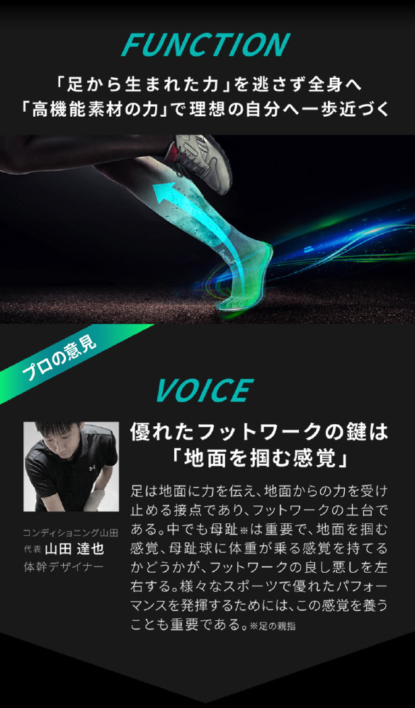 足から生まれた力を逃さず、運動のパフォーマンスを向上。