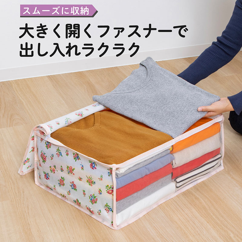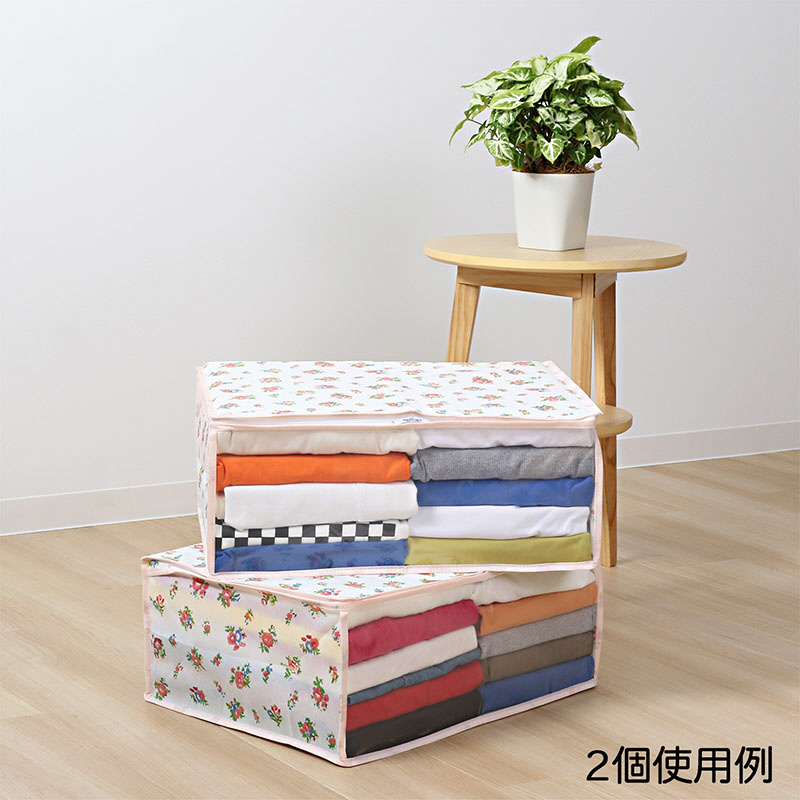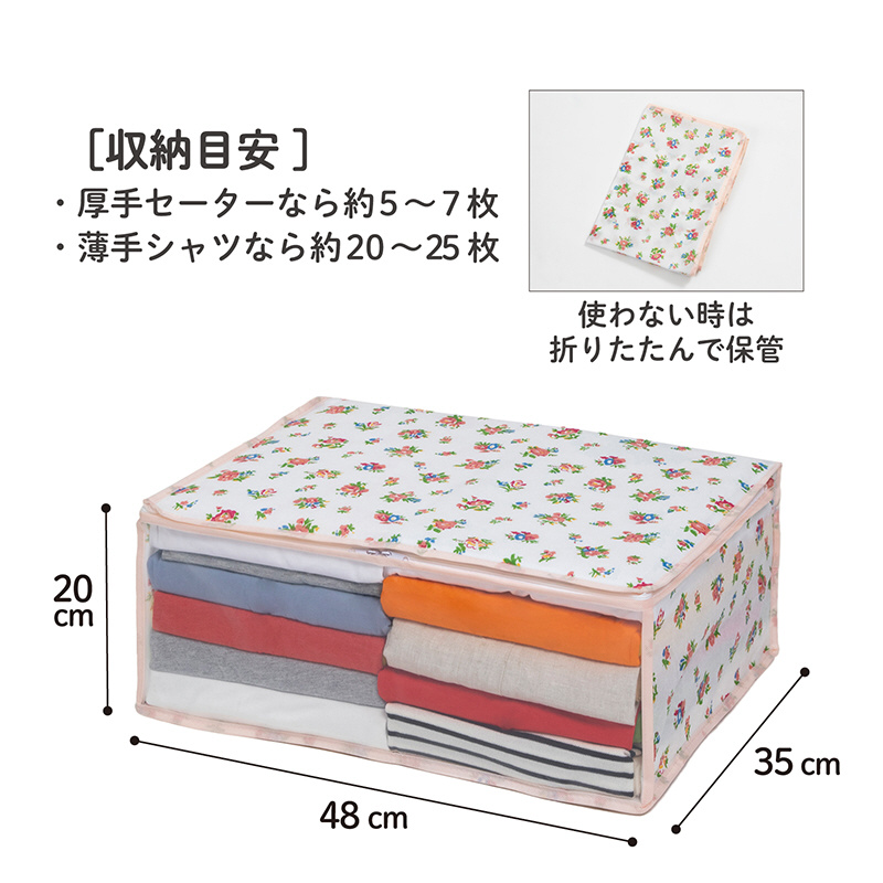 【商品仕様】サイズ/約幅48×奥行35×高さ20cm、収納目安/厚手セーター約5~7枚・薄手シャツ約20~25枚(袋1枚あたり)、材質/ポリプロピレン、ポリエチレン