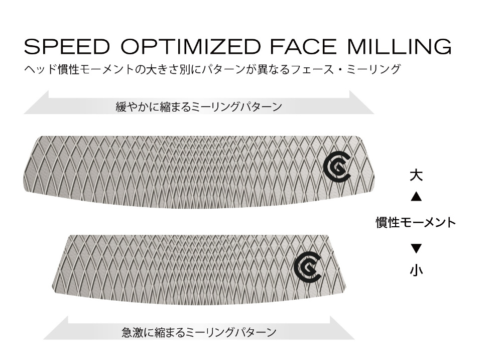 ヘッドの慣性モーメントの大きさ別にパターンが異なるフェース・ミーリング