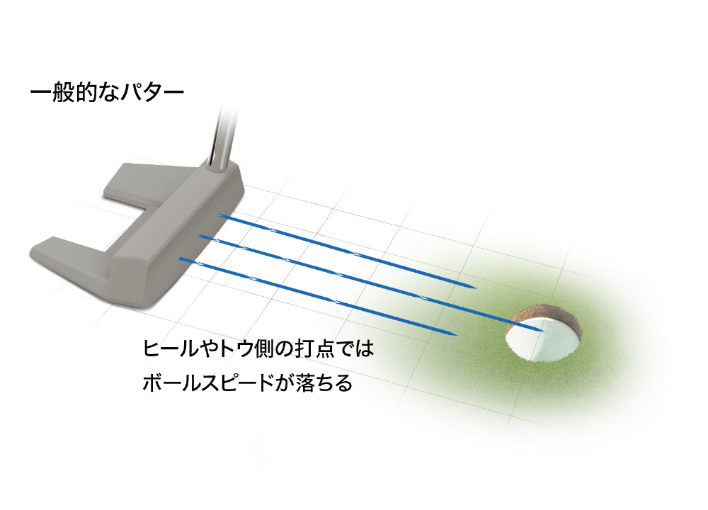 オフセンターヒットでも均一なボールスピードとソフトなフィーリング