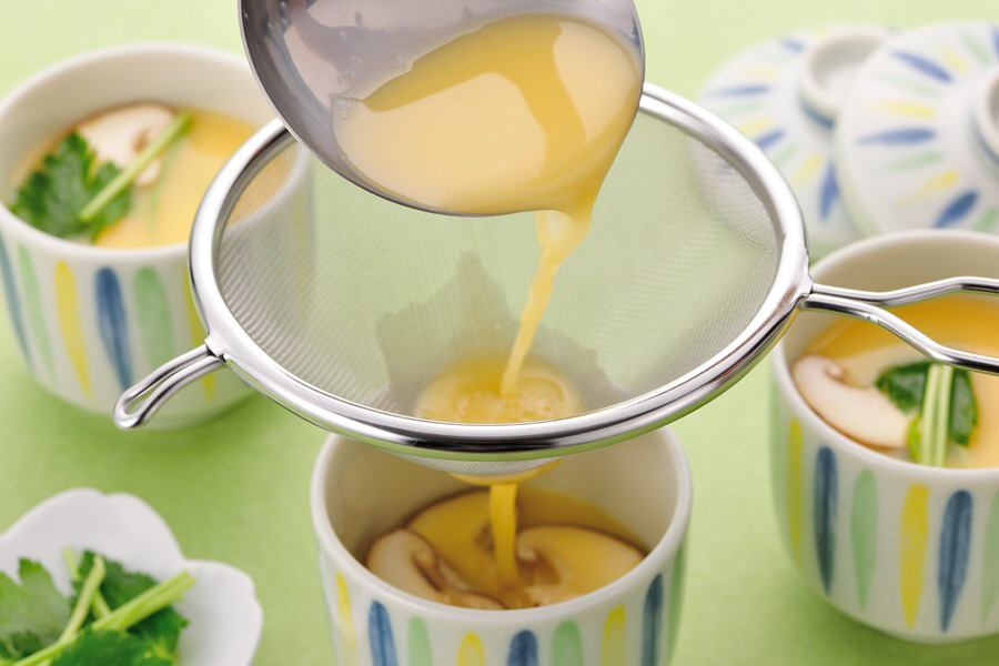 茶碗蒸しやプリン等のこし器としても便利です。泡やダマをこすことにより本格的な口当たりの良い食感の料理ができます