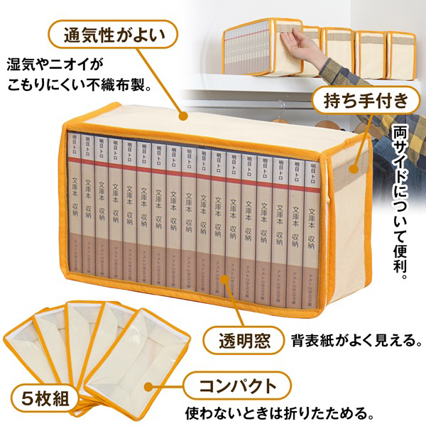 文庫本を通気性の良い不織布でまとめてスッキリ収納。