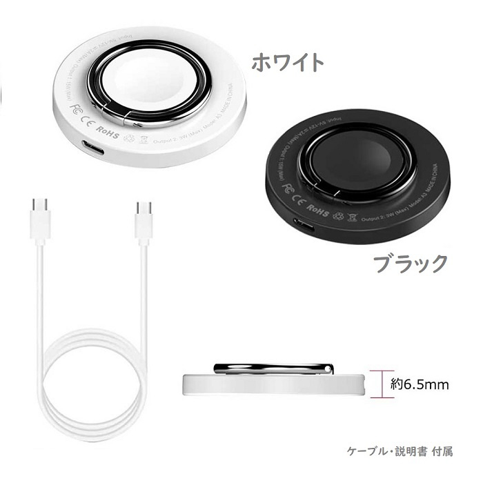 MagSafe対応 2in1 コンパクトワイヤレス充電器(ホワイト) タイプCケーブルに対応したワイヤレス充電器です。 ApplwatchとiPhoneもワイヤレスで同時充電できます。