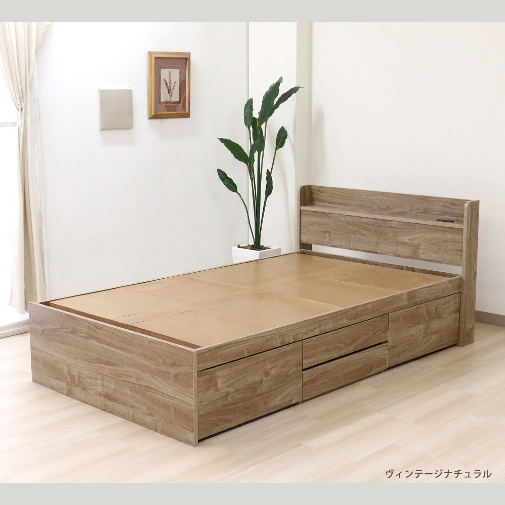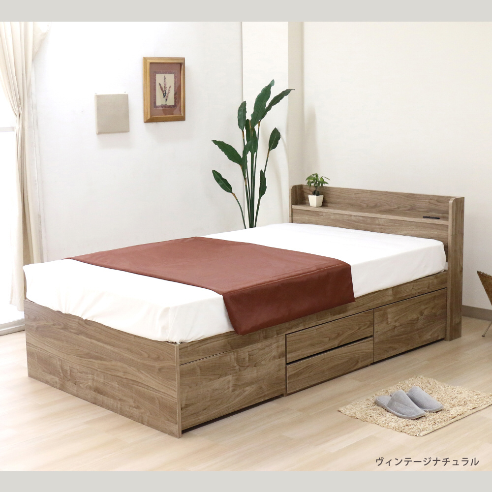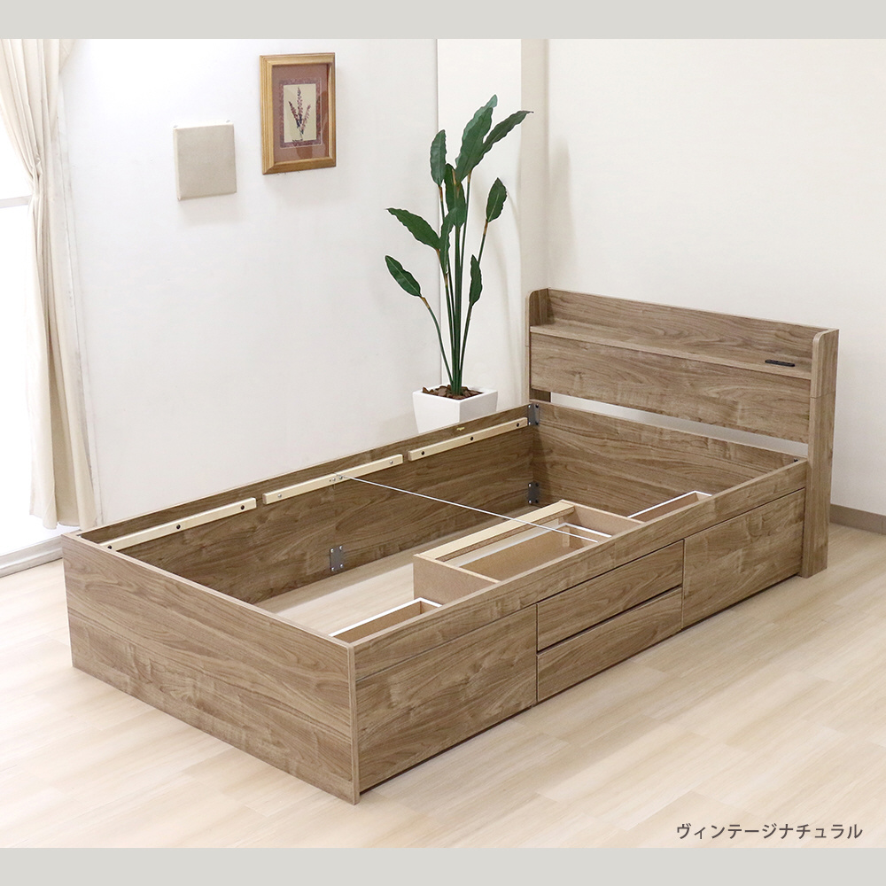 棚付きチェストベッド(圧縮ロールポケット&ボンネルマットレス付) ヴィンテージナチュラル [ダブルサイズ]