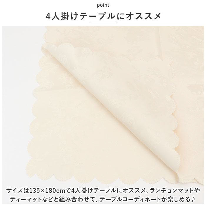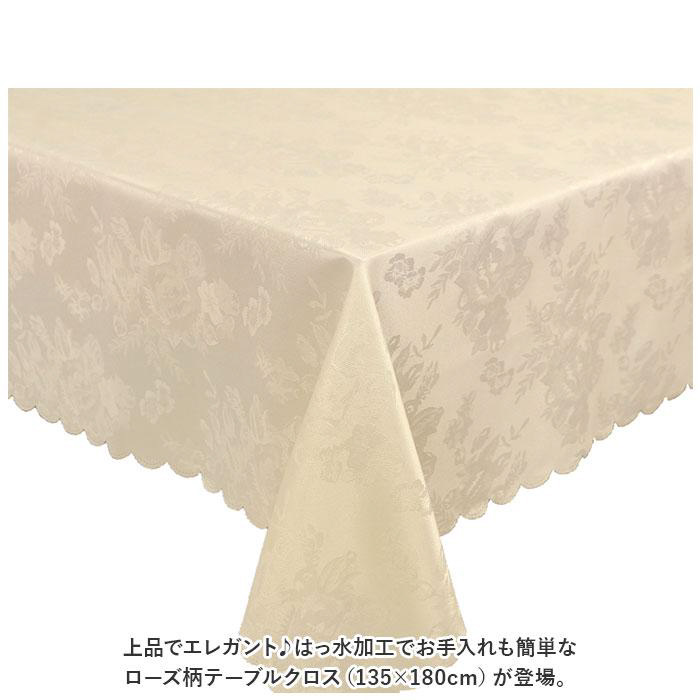 上品でエレガント♪はっ水加工でお手入れも簡単なローズ柄テーブルクロス(135×180cm)が登場。
