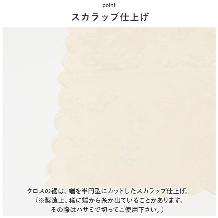 ■クロスの裾は、端を半円型にカットしたスカラップ仕上げ。