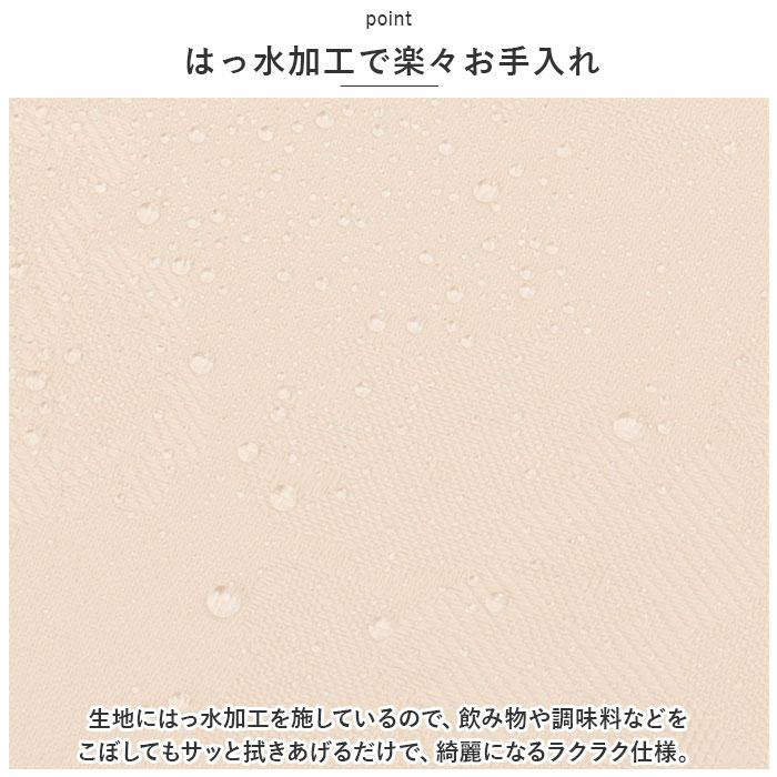 ■生地にはっ水加工を施しているので、飲み物や調味料などをこぼしてもサッと拭きあげるだけで、綺麗になるラクラク仕様。