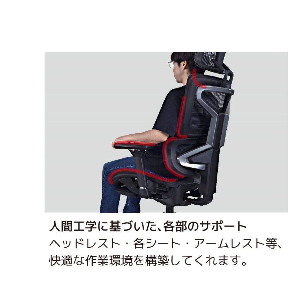ヘッドレスト・各シート・アームレスト等、快適な作業環境を構築してくれます。