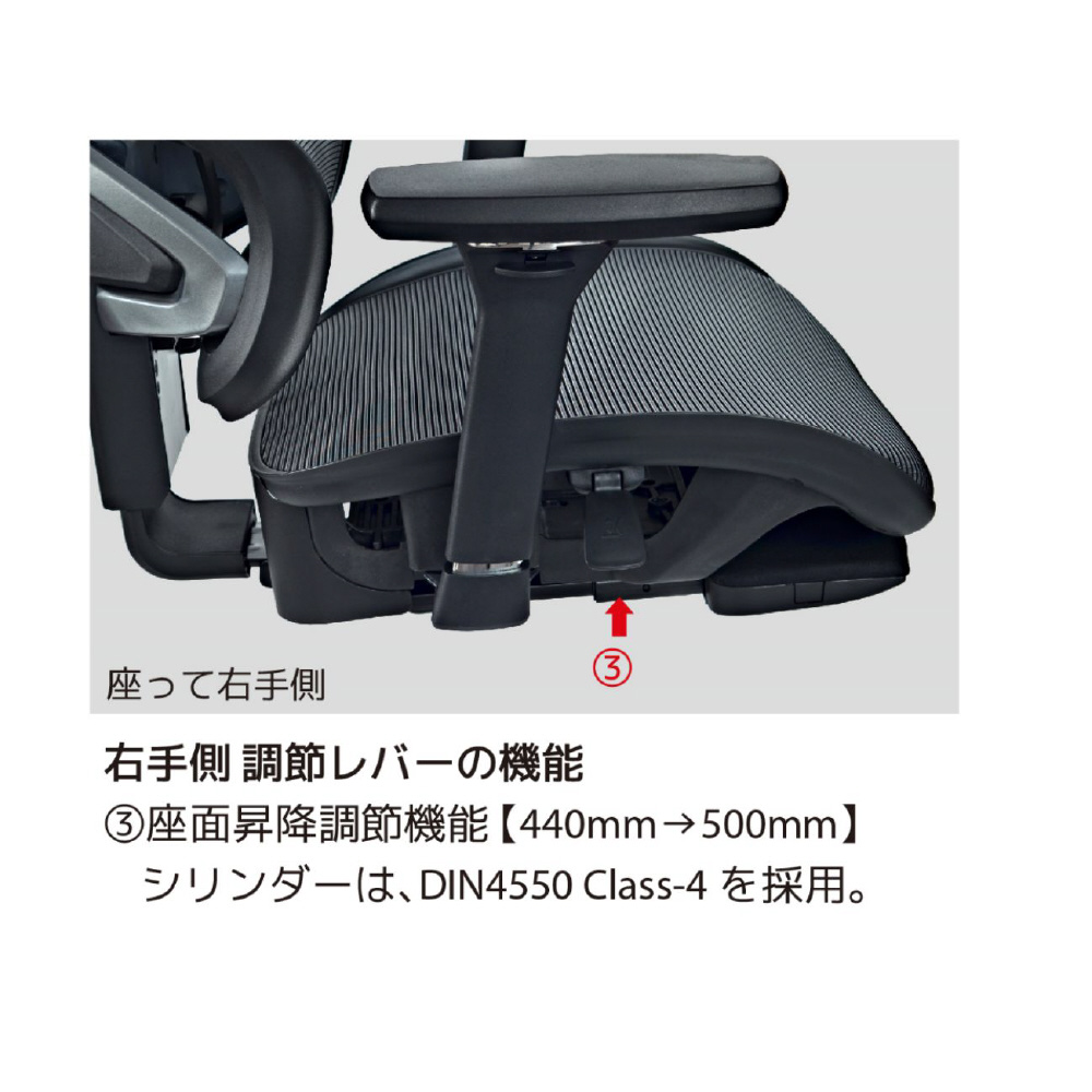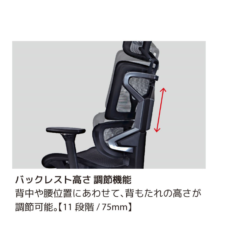 アームレストは昇降・前後・左右・内寸の調節が可能な4Dアームレストを採用。