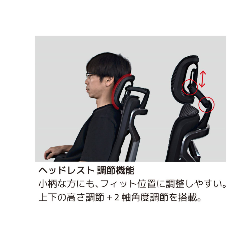 ・ヘッドレスト調節機能(高さ調節+2軸角度調節)