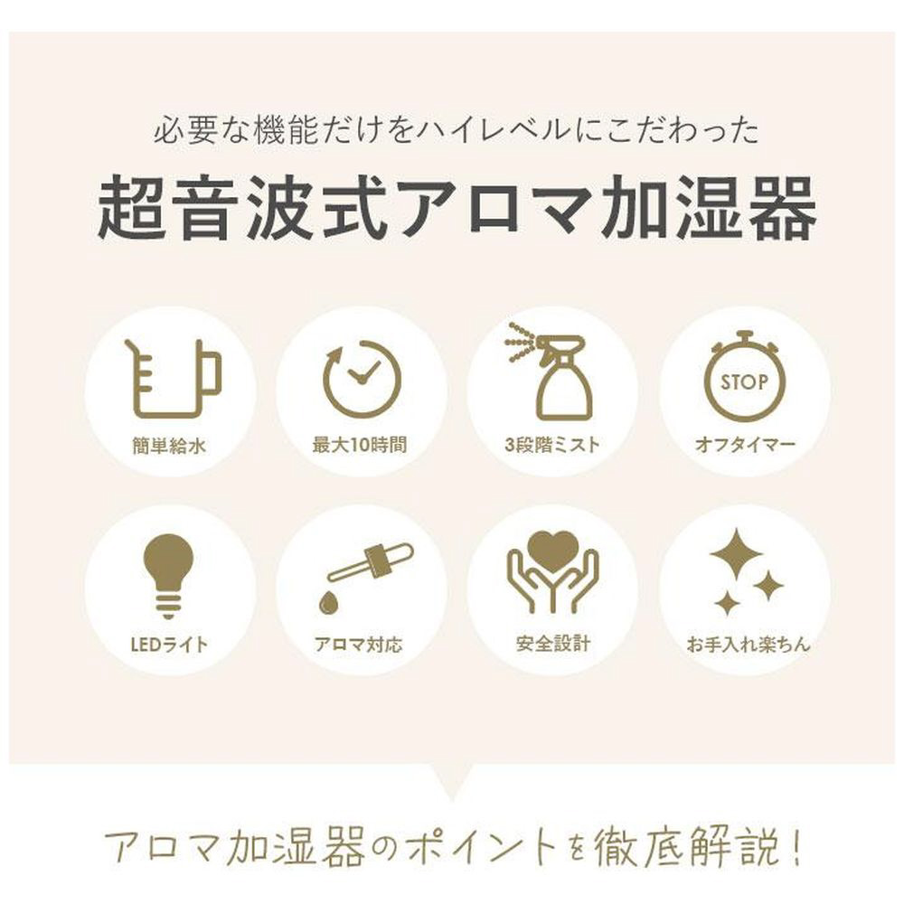 ■必要な機能だけをハイレベルにこだわった、シンプルで洗練された超音波式アロマ加湿器。