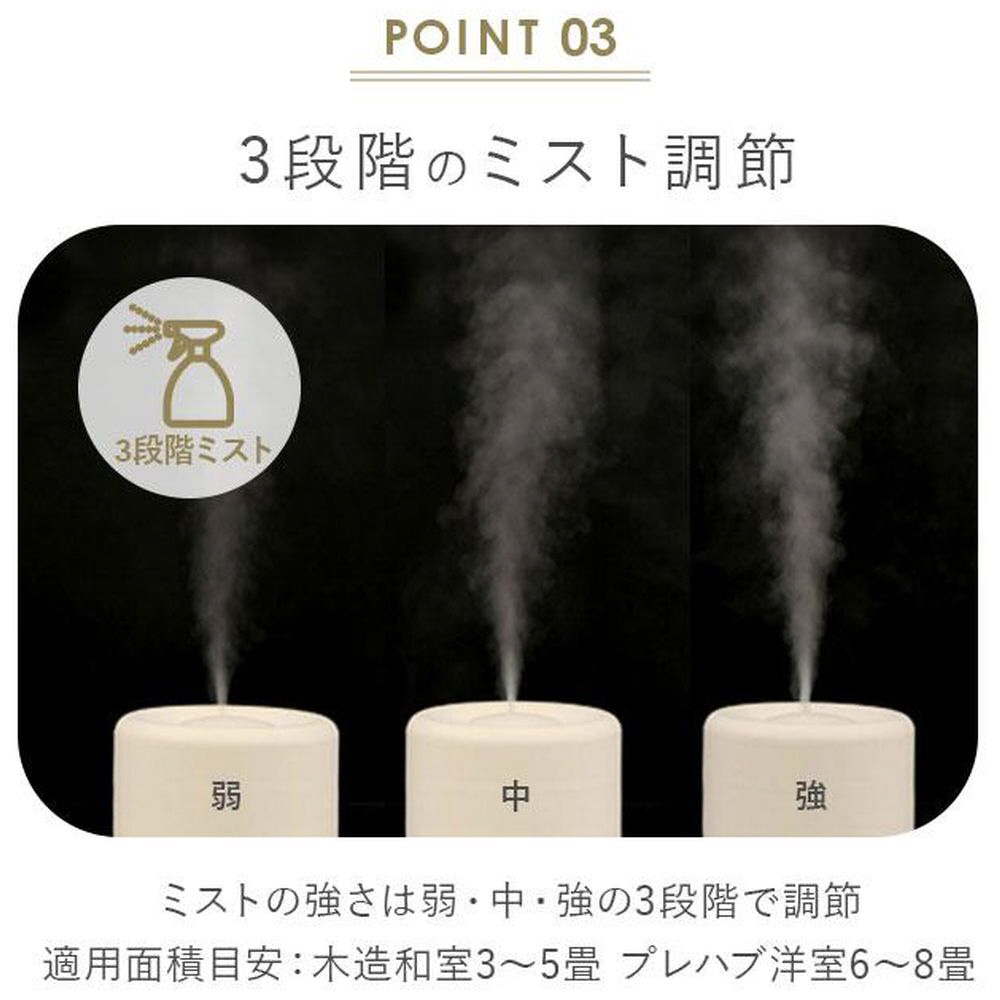 ■ミストの強さは好みで選べる3段階(強中弱)。