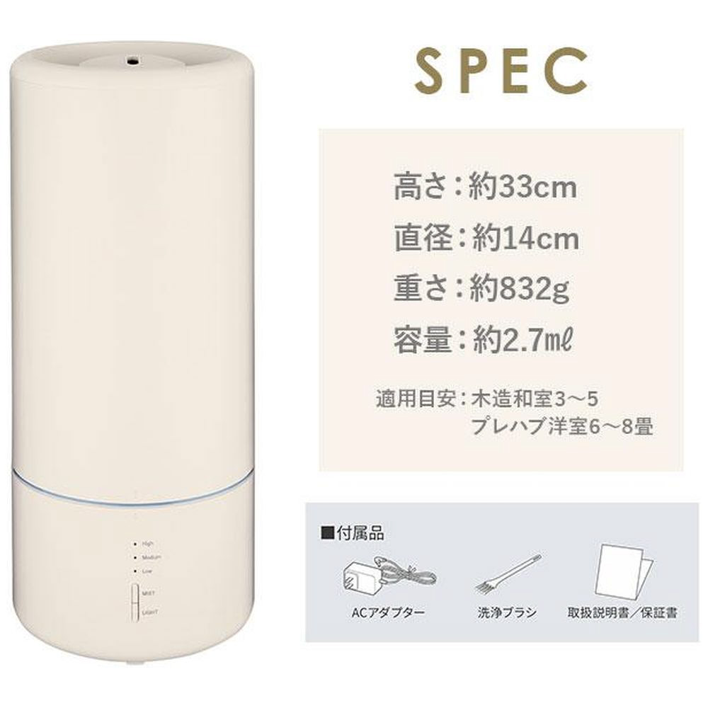 加湿能力 High 約250mL/h、Medium 約200mL/h、Low 約100mL/h