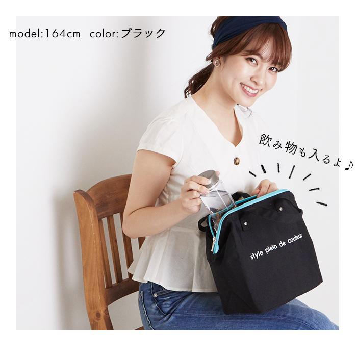 ■Lサイズは、縦長で容量もあるので、お弁当と飲み物のほかに、デザートなども一緒に持ち運べます。