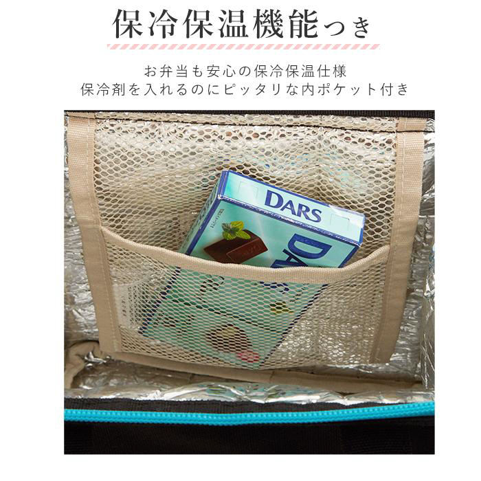 ■お弁当も安心の保冷保温仕様で、保冷剤を入れるのにピッタリな内ポケット付きです。