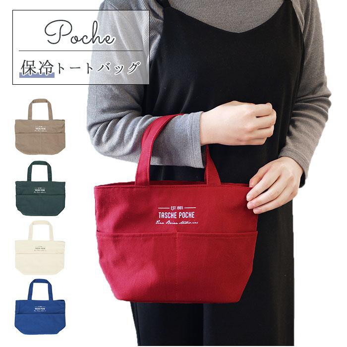 通勤通学、お出かけに便利な、ポッシェの保冷トートバッグ♪お弁当やミニ水筒を入れられるサイズ感。