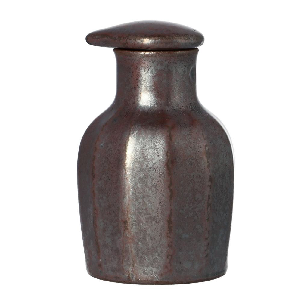 ■渋味が艶めく釉薬の風合いと、面の取られた無駄のないフォルムが美しい、昔ながらの醤油差し。
