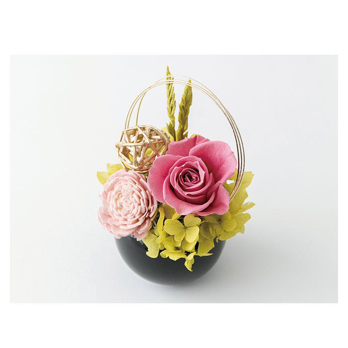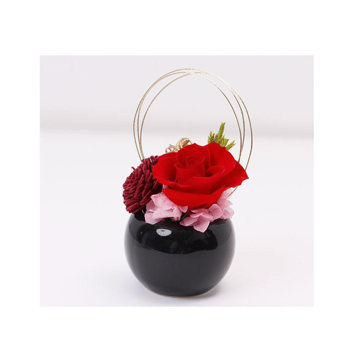 ・素材: [花] プリザーブドフラワー、ドライフラワー [容器] 陶器 [水引き] 和紙
