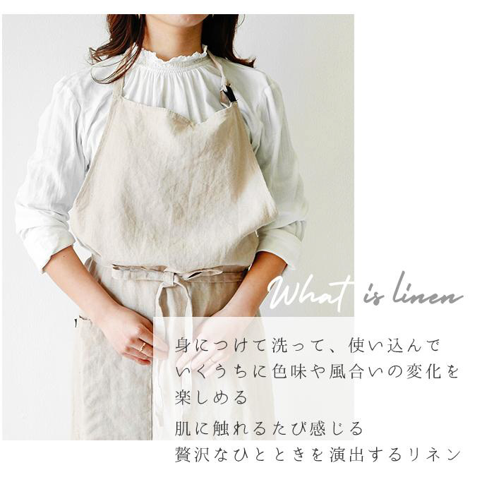 ウォッシュド加工で柔らかく優しい風合い。上質なリネンを使用した、Linne(リンネ)のエプロン。