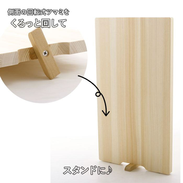 古くから最高級まな板として重宝されてきた四万十(しまんと)ひのきを使用!スタンド付きまな板Lサイズ。