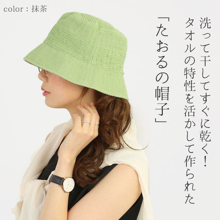 洗って干してすぐに乾く!タオルの特性を活かして作られた「たおるの帽子」が登場!お肌の敏感な方も心地よく使える、コットン100%素材を使用。