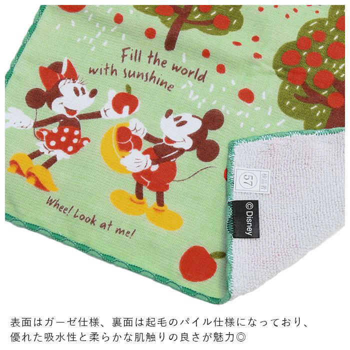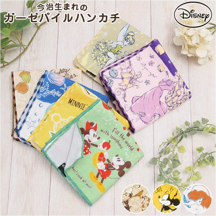 ディズニーキャラクターの絵柄が可愛い、今治生まれのガーゼパイルハンカチ♪綿100%素材を使用。