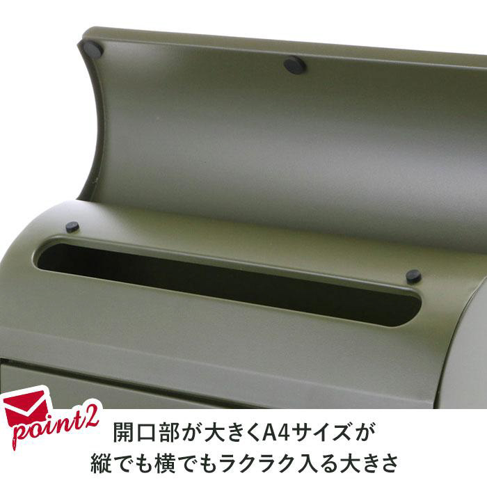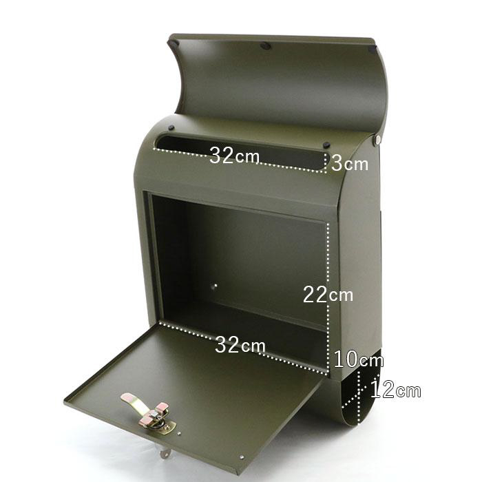 ・サイズ: ・外形寸法 [高さ] 約45cm [横幅] 約38cm [奥行] 約12.5cm・郵便物投入口サイズ [縦] 約3cm [横] 約32cm・郵便物取出し口サイズ [縦] 約22cm [横] 約32cm [ハンドル高さ] 約4.3cm・下部新聞受けスペース [上下幅] 約10cm [最大奥行] 約12cm