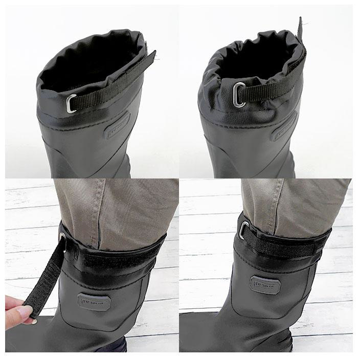 ■履き口部分はフード状になっており、マジックテープ式ベルトできゅっと絞ることが可能。