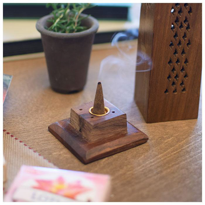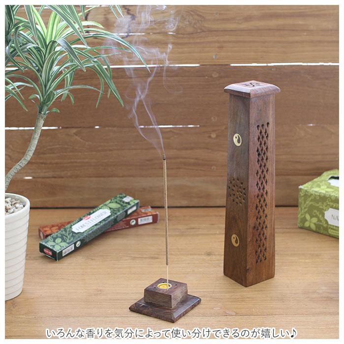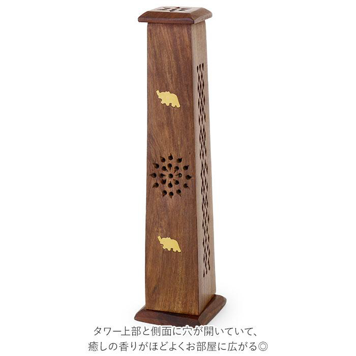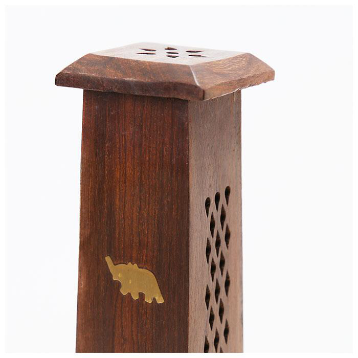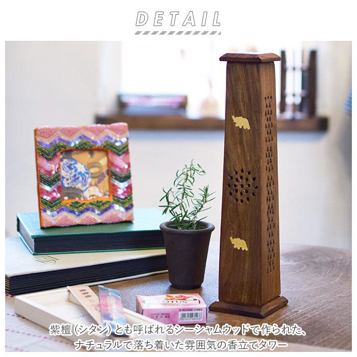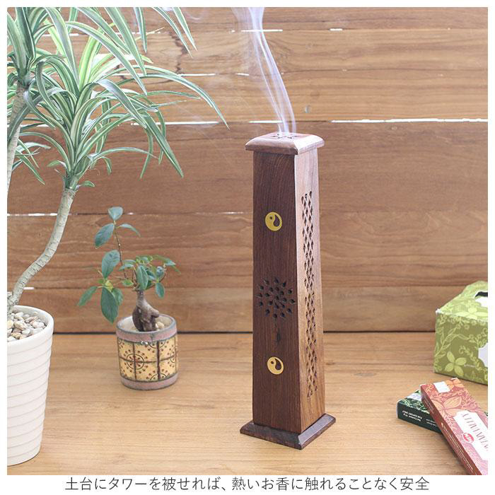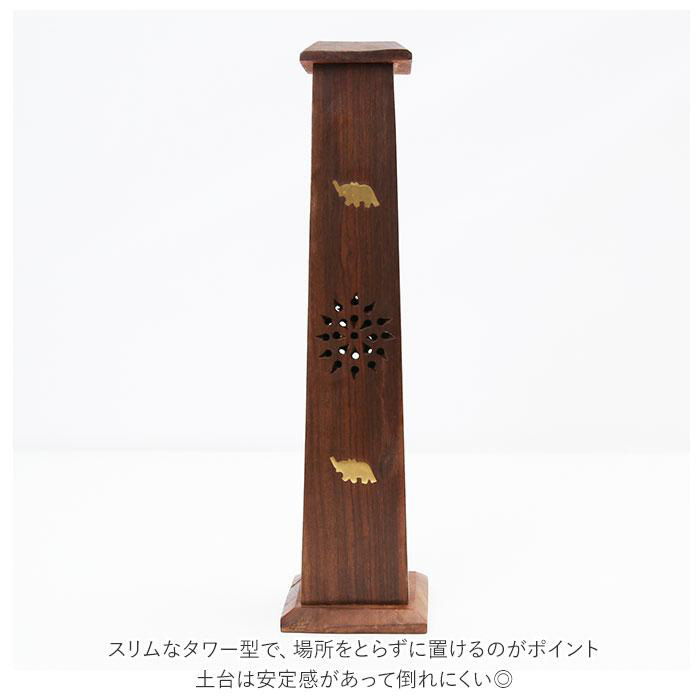紫檀(シタン)とも呼ばれるシーシャムウッドで作られた、ナチュラルで落ち着いた雰囲気の香立てタワー。