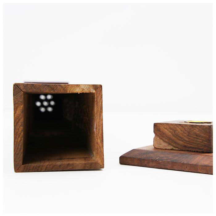 ■土台にはスティックタイプのお香を縦向きに置く穴が4つ、コーンタイプのお香を置くトレイが1つ付いた2wayタイプ。