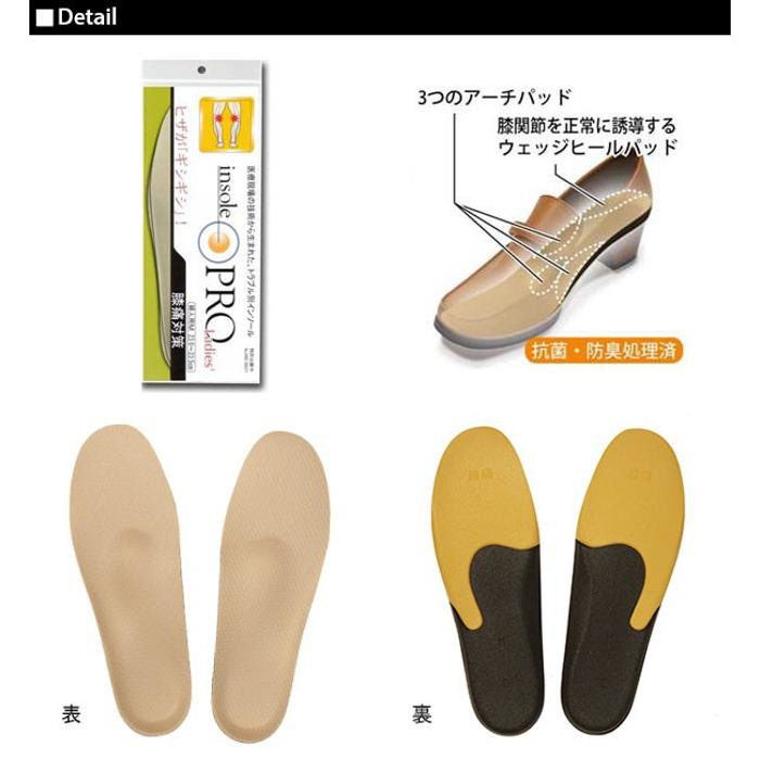 膝関節の角度を調整し、膝痛を和らげるため、「ヒールウェッジパッド」でかかとの外側を持ち上げる形状となっています